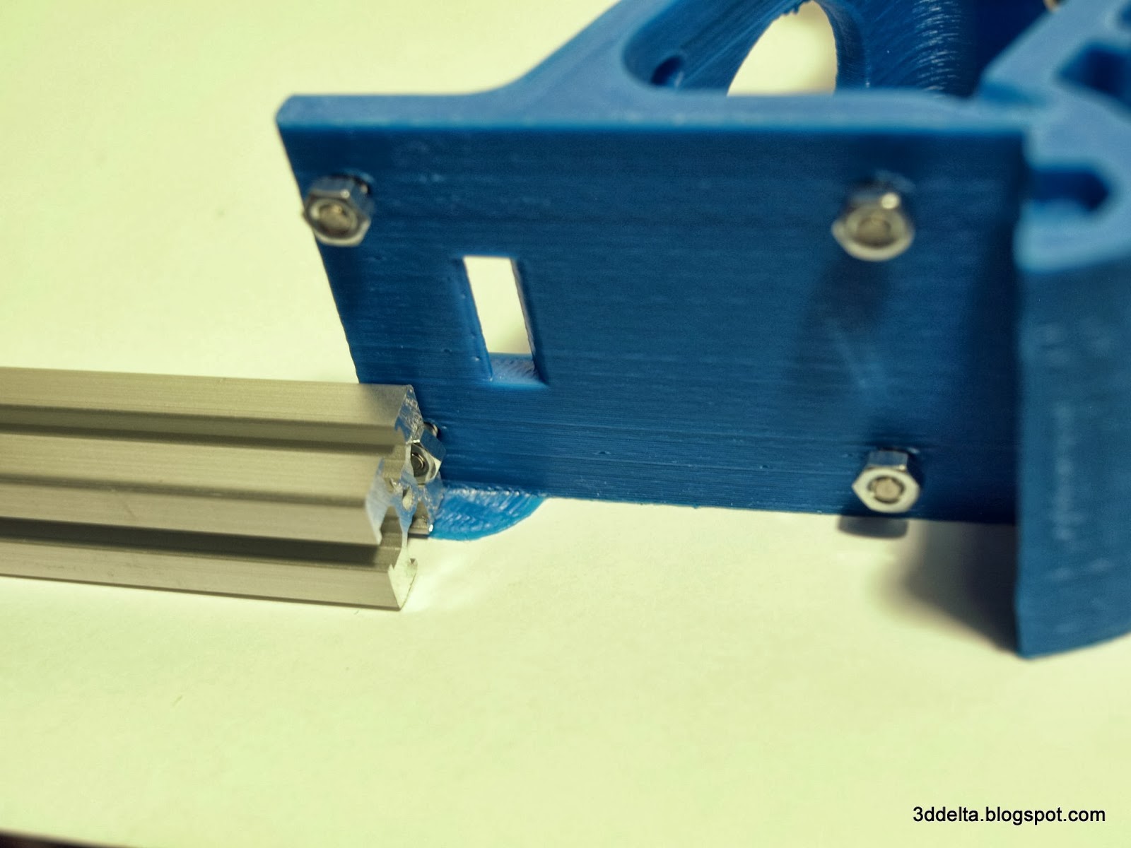 The vertical linear rails are uuh vertical, limiting the motion of the carriages up and down. The carriages are designed and built with an important characteristic - the two connection points for the effector support rods have to be on a horizontal axis. With the opposite sides of a parallelogram being parallel this keeps the effector platform parallel with the printing bed.