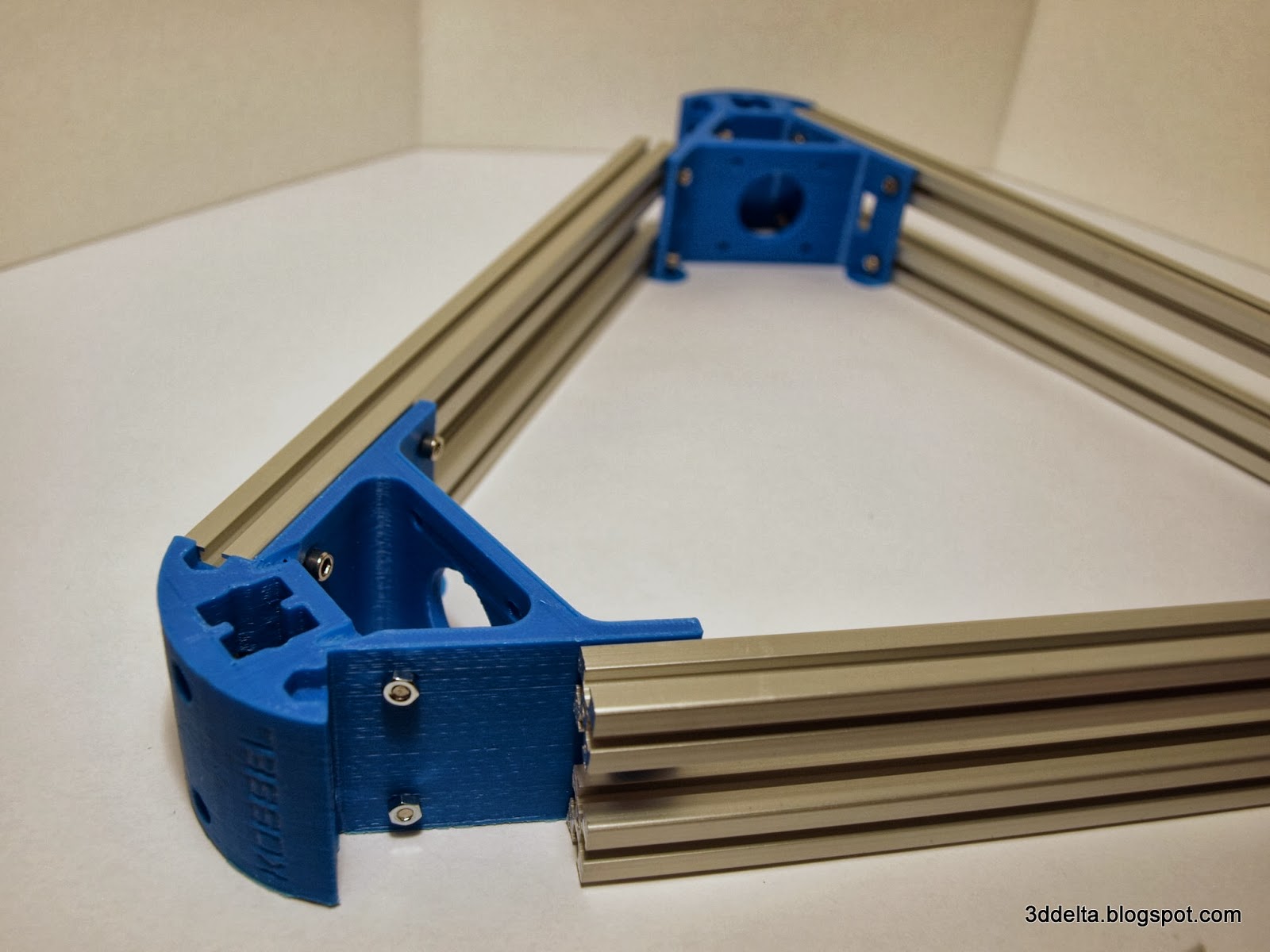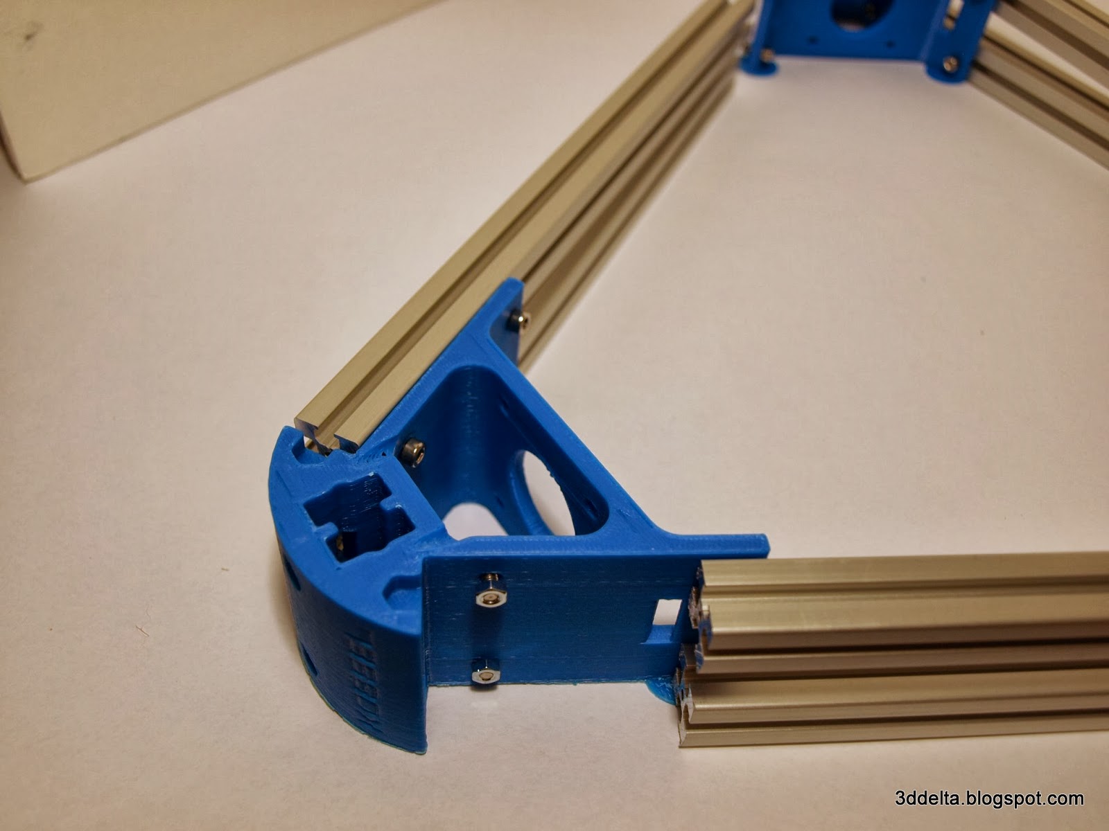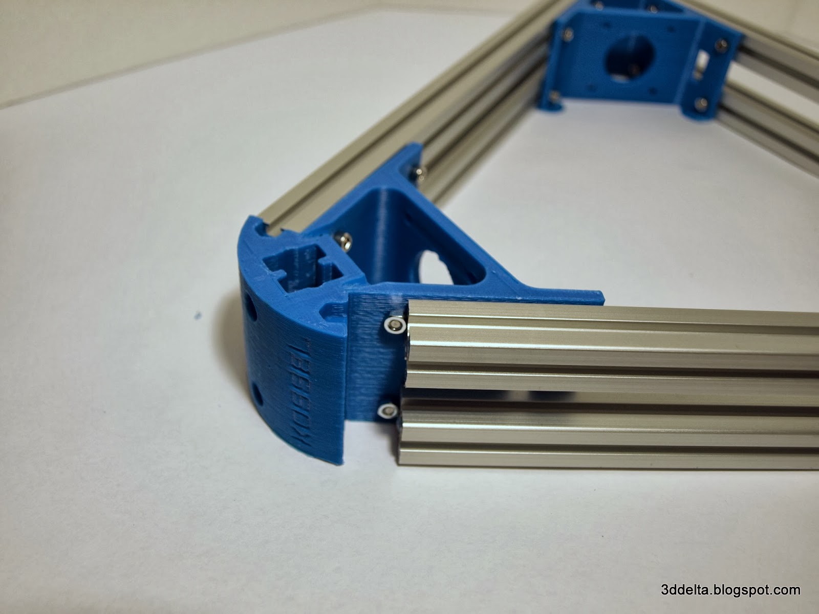 Once everything put together use the 3mm Allen wrench to tight all the screws that secure the aluminum extrusions to the printed corners. See views 12 and 13.