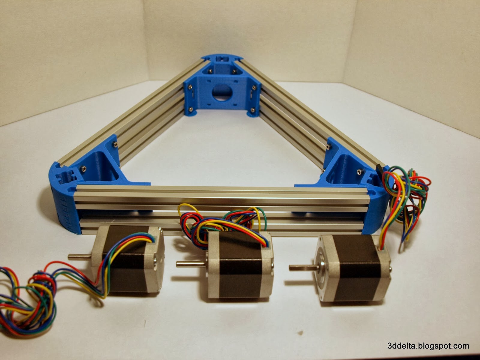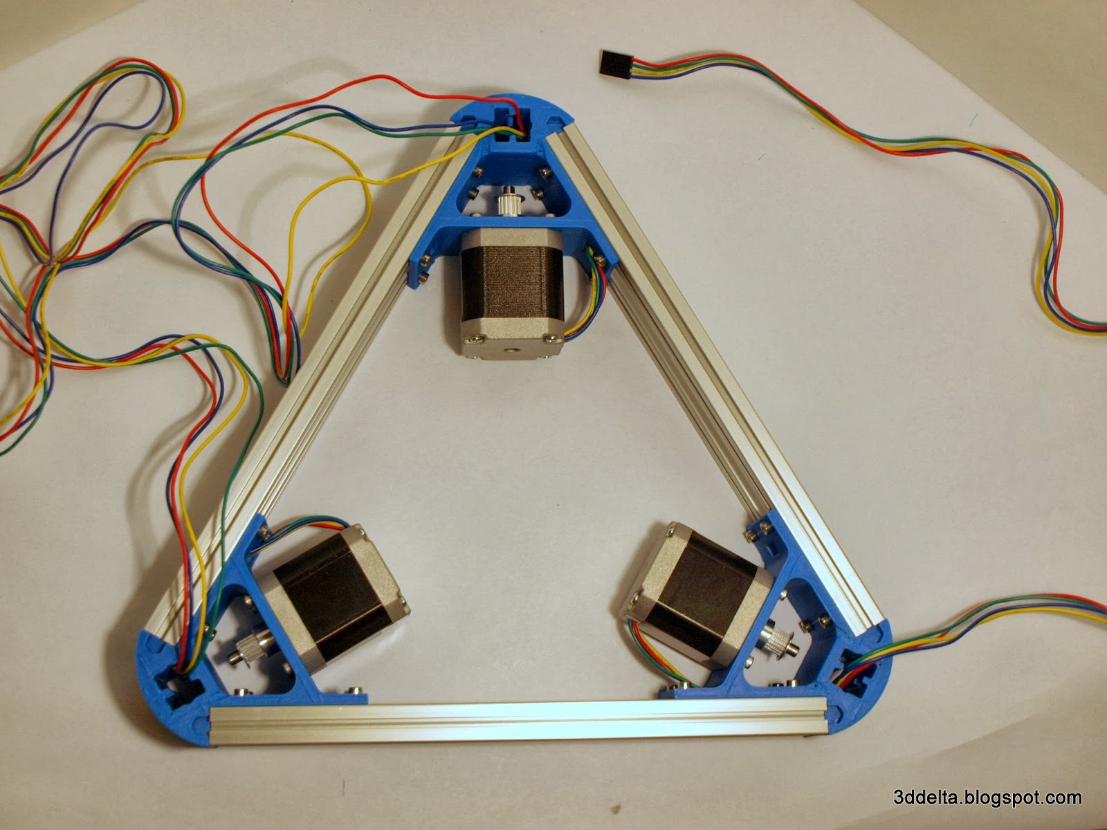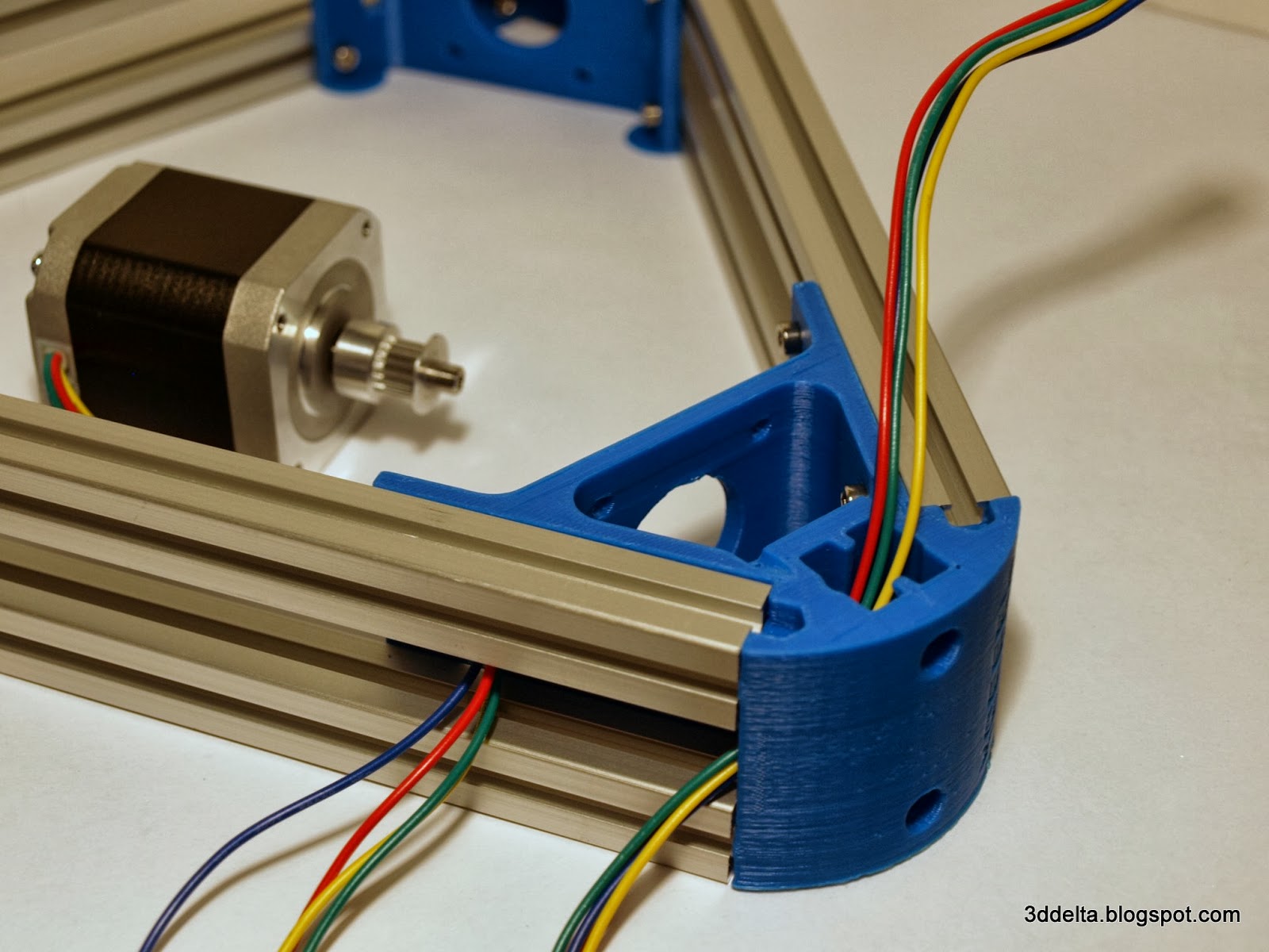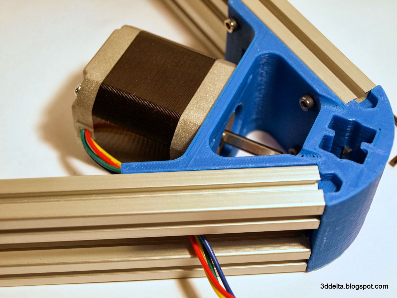 The assembly process is similar with the one of the base. The next views illustrate step by step bringing the printed corners and the aluminum extrusions together.