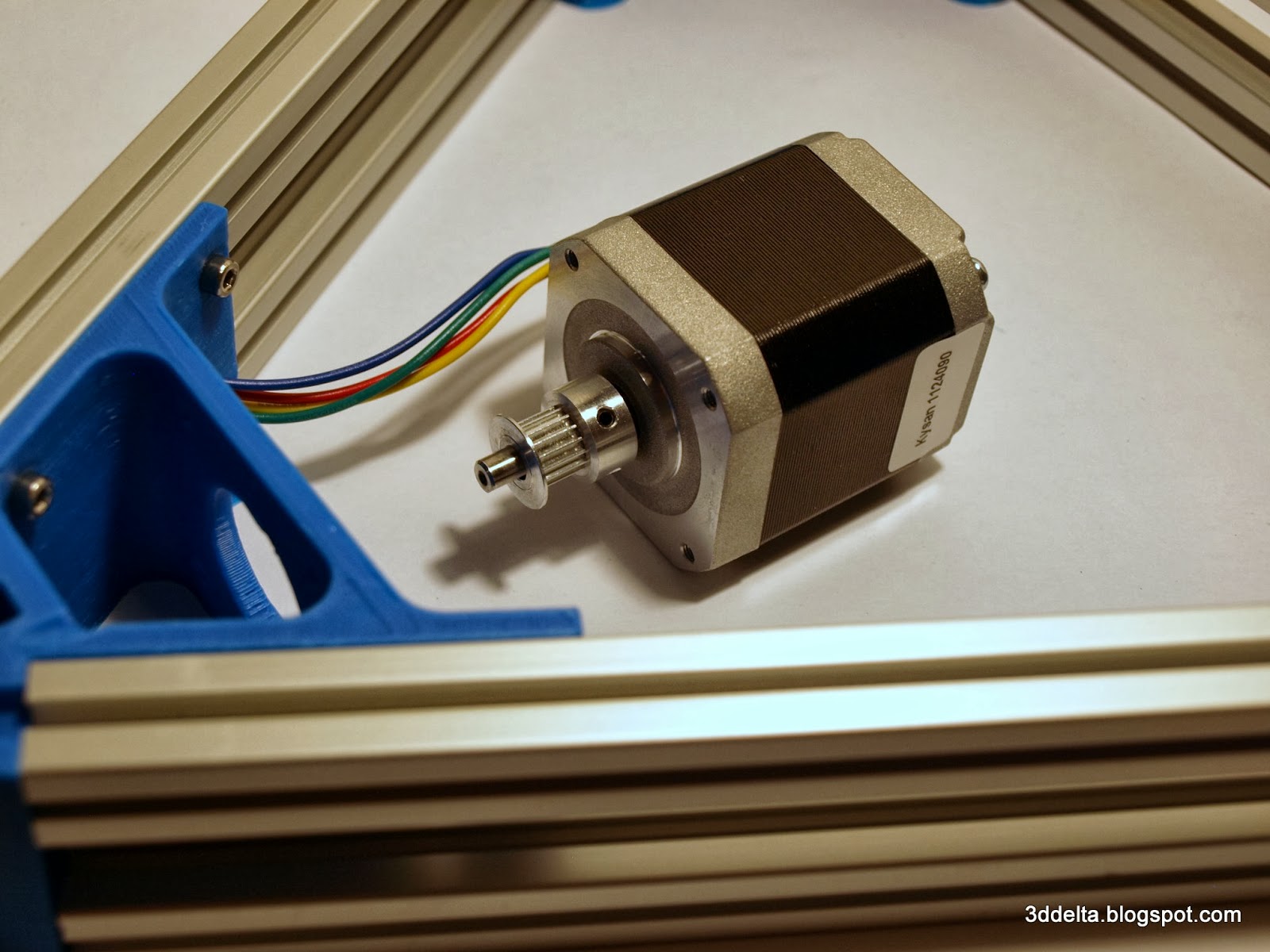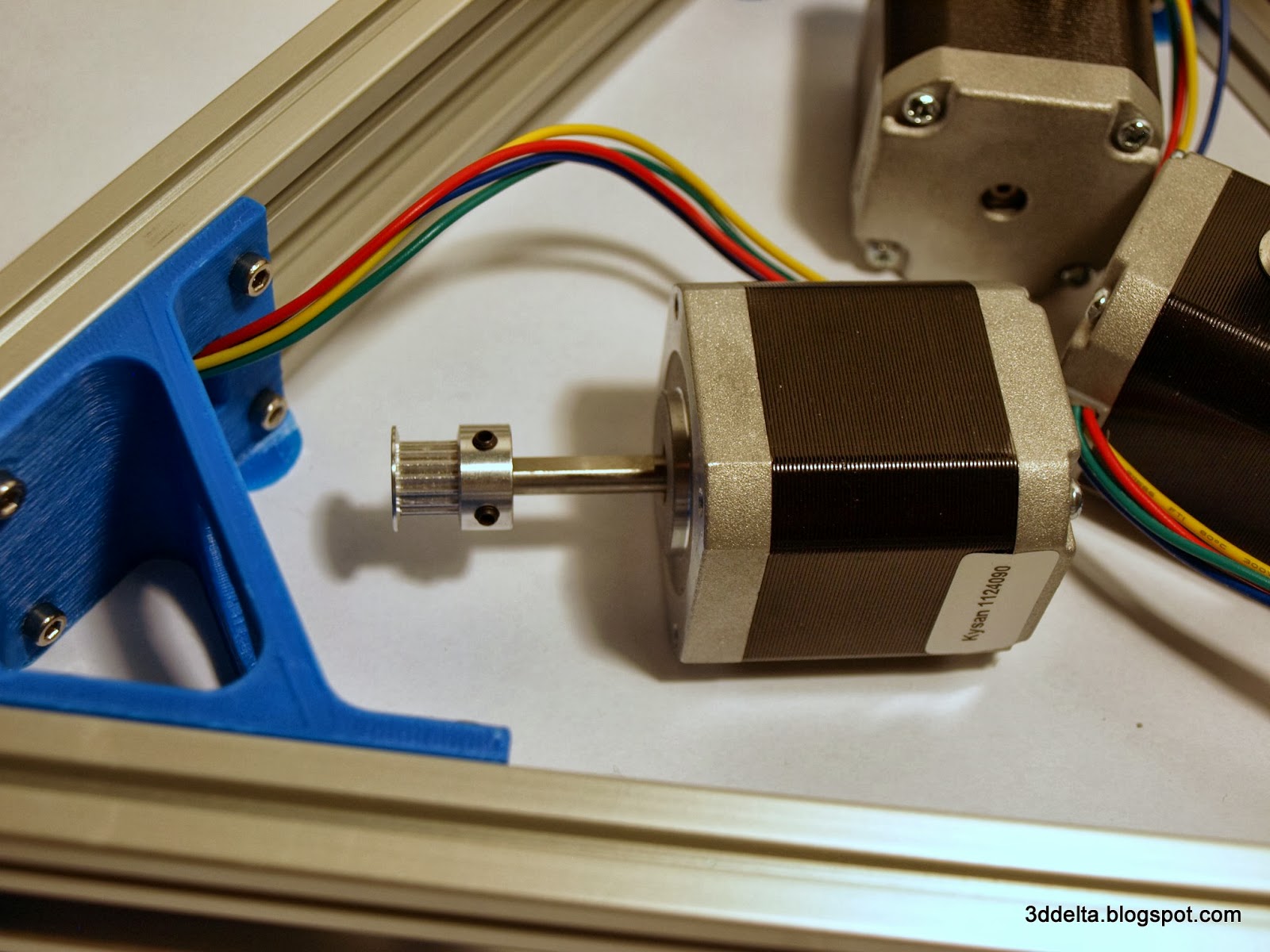 Answer? The GT2 pulley is missing from the motor shaft. Once attached with screws to the printed corner there is no space to introduce the GT2 pulley on the shaft. So do not attach the motors until you insert the GT2 pulley.